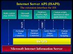 Les extension ISAPI sont de vrai applications qui fonctionnent sur IIS. Ces applications ont accès à l'ensemble des fonctionnalités proposées par IIS. Elles sont implémentées sous forme de DLL et chargées sous contrôle de IIS. Les clients web ont accès aux fonctionnalités de la même façon que s'ils avaient accès a une page HTML statique. L'accès à ISAPI se fait sous la forme d'un fichier, d'un répertoire ou d'un site.